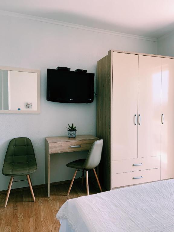 Boasting a private entrance, this air-conditioned apartment features 1 living room, 2 separate bedrooms and 1 bathroom with a bath and a shower. Guests can make meals in the kitchen that has a stovetop, a refrigerator, kitchenware and a tea and coffee maker. Featuring a balcony with sea views, this apartment also features soundproof walls and a flat-screen TV with satellite channels. The unit has 4 beds.